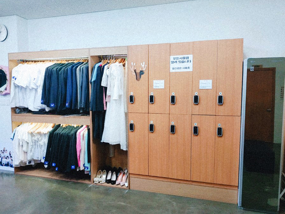 흰 셔츠, 블라우스, 재킷은 물론 넥타이까지 준비되어 있으니, 가벼운 마음으로 방문하세요. 깨끗하게 관리된 의상을 입고 최상의 컨디션에서 촬영하실 수 있도록 보좌하겠습니다.